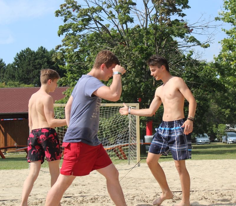 Arra is figyelmet fordítottunk, hogy az egyházmegye családjai jobban megismerjék egymást: pénteken este egy játékkal, a humán bingóval indítottuk az ismerkedést, amikor is a leggyorsabb családok ajándékot nyerhettek. Szombaton strandröplabda bajnokságot szerveztek kamaszaink a vállalkozó kedvűeknek. Vasárnap délelőtt pedig Kondé Lajos pasztorális helynök celebrálta nekünk a tábori misét.