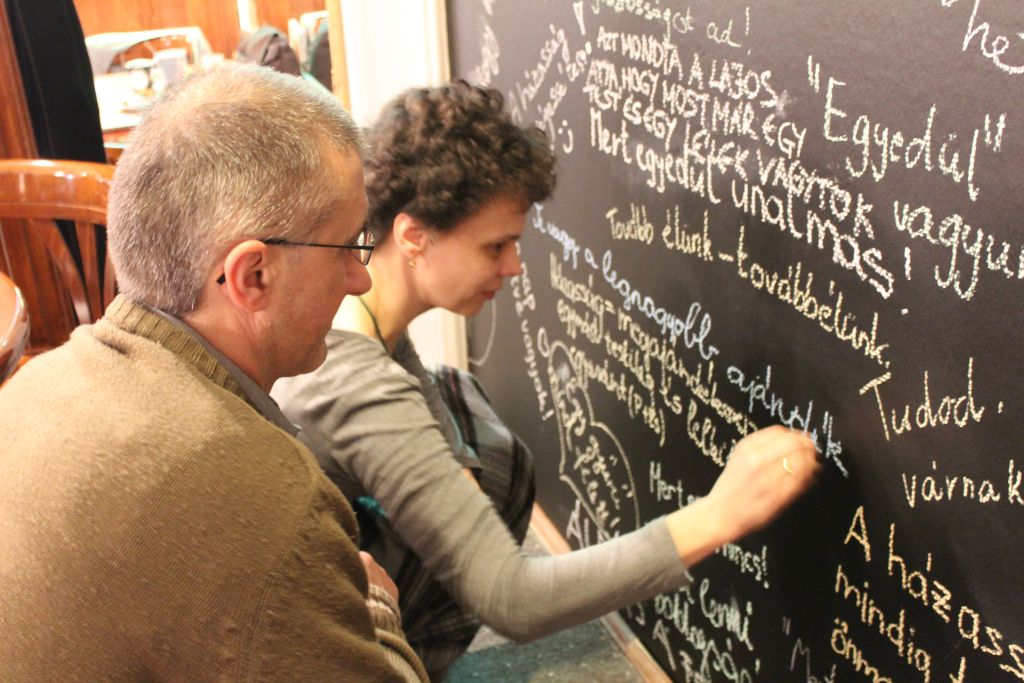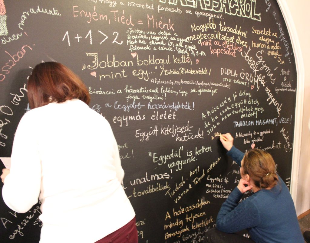 Jól sikerült a keddi EGYséget KÉPezünk kávéházi randevú: 55 házaspár állt újra kamera elé, hogy megörökítsék összetartozásukat, és egy szép órát töltsenek el együtt egy forró ital mellett felelevenítve házasságuk fontos pillanatait. Sőt még egy egész falat is teleírtak az üzeneteikkel, hogy tudja meg a nagyvilág, miért is jó házasságban élni.