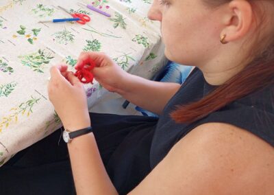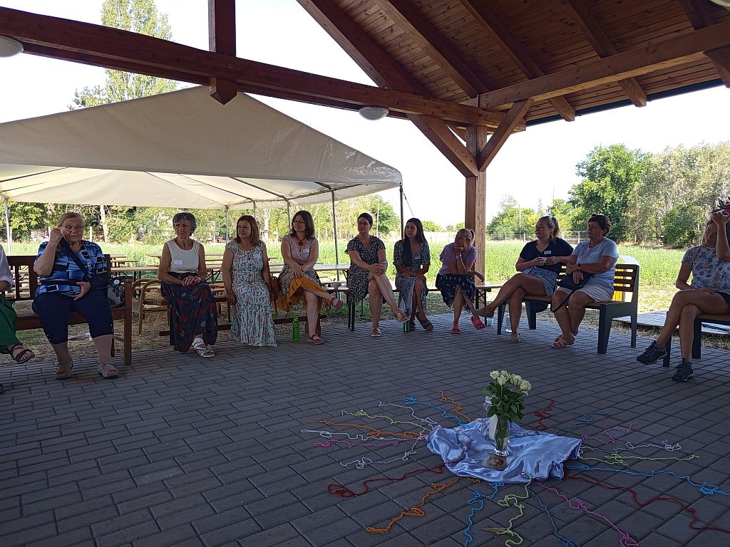 A nap vége felé egy kis kézműveskédére, horgolásra is jutott idő, ami tökéletes lehetőséget nyújtott a kötetlen, jó hangulatú beszélgetéseknek. Körülbelül olyanok lehettünk egy külső szemlélőnek, mint a lányok a fonóban.